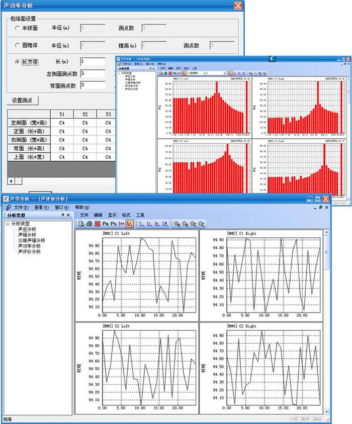 | TSTAA声学分析软件是运行在Win2000/XP平台上的多通道声学测量分析专业软件,包括声压测量分析、声强测量分析、声功率测量分析、三维声强谱和等声强线测量分析,基本包含声学测量的各项主要性能,本程序库基于Windows2000/XP操作系统下的VC++平台设计开发。 |