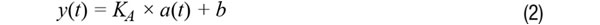 图2提供了一个简单的一阶模型,其描述了时域中MEMS加速度计对线性加速度(a)的响应(y)。在该关系中,偏置(b)表示传感器无振动时的输出值。比例因子(KA)表示MEMS加速度计响应(y)相对于线性加速度(a)变化的改变量。