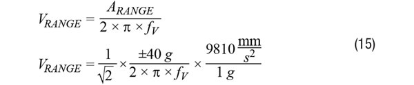 此过程的第一步是利用等式9估计四个不同噪声带宽(fNBW)产生的噪声(ANOISE):1 Hz、10 Hz、100 Hz和1000 Hz。表2用两个不同单位的线速度给出了这些结果:g和mm/s2。g在多数MEMS加速度计规格表中相当常见,但振动指标常常不是以此来提供。幸运的是,g和mm/s2的关系已为大家熟知,参见等式13。