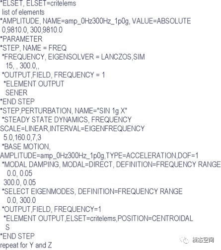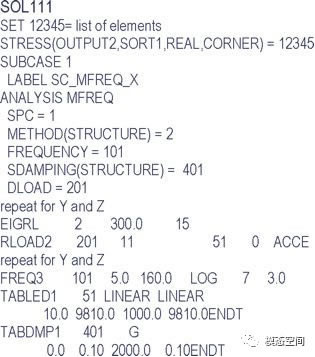 图2和图3分别展示了使用Nastran和Abaqus计算频响应力的头文件,结构所受的载荷为加速度激励。