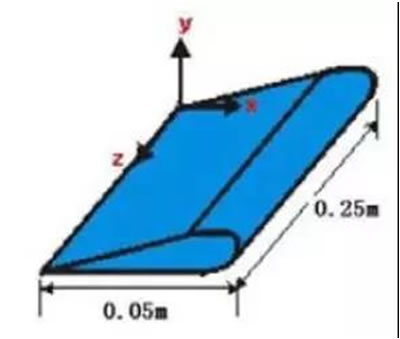 一个简化的飞机机翼模型如图1所示,机翼的一端固定在机体上,另一端为悬空自由端,该机翼沿延翼方向为等厚度,有关的几何尺寸见图1。