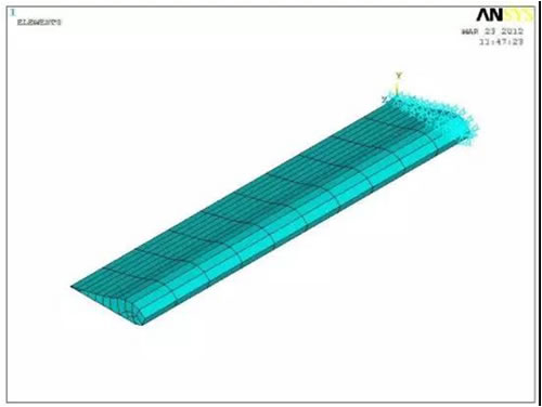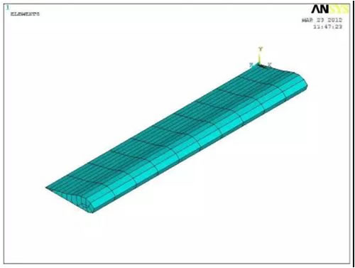 机翼材料的常数为: 弹性模量E =0.26GPa, 泊松比μ =0.3,密度ρ =886kg/m³。