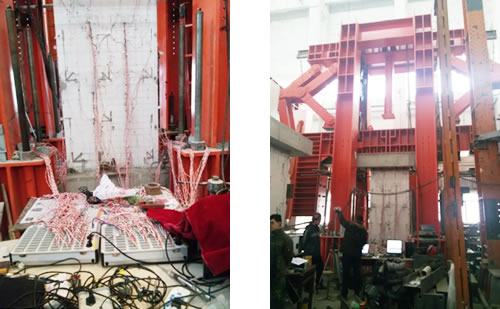 一、项目简介哈尔滨工业大学土木工程学院墙片静载试验试验二、测试设备TZT3826E静态应变仪 4台TZTDAS信号测试分析系统软件笔记本电脑1台,应变片若干三、试验过程在钢筋、墙片表面预设测点安装应变片,连接到应变测试仪,通过对墙片加载测试各测点应变值四、现场照片
