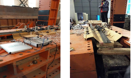 一、项目简介塑钢材料性能测试,主要测试塑钢的应变、位移以及压力,通过使用千斤顶加压达到塑钢的承受极限,通过这个来判断塑钢在使用过程中所能承受的最大形变以及压力。二、测试设备TZT3827E动静态应变仪应变片顶杆式位移计载荷传感器TZTDAS动态信号测试分析系统软件笔记本电脑三、测试内容通过应变片和位移计得出塑钢材料在加载过程中的应变和位移,并得出极限位置处的最大数值,通过比较设计时的理论值,来判断材料是否满足使用要求。四、现场图片