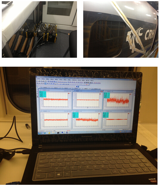 14年8月份,我公司配合西南交通大学牵引与动力国家重点实验室相关课题组完成了南昌500KM/h试验车在运行过程中的振动信号采集。此次实验采用了我公司的TZT5916坚固型动态应变仪。 二、实验设备 TZT5916坚固型动态应变仪4台(共128通道) ICP电压输出型加速度传感器若干 信号传输线缆若干 三、实验过程 首先在列车各部位安装加速度传感器,将传感器的信号线连接到信号采集系统上,列车运行时,即可采集到完整的加速度信号用于后续的分析。 四、现场照片