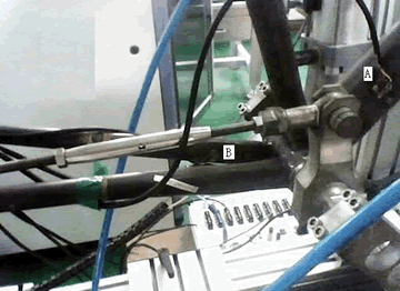 由于车架在测试机的施力下很多部位是不同方向的,所以采用应变花进行测量,如下图一所示,下管A处粘贴了直角2片应变花, 平叉B处粘贴了直角三片应变花。接着在另外一个不受力的车架上粘贴一个相同阻值的补偿片。