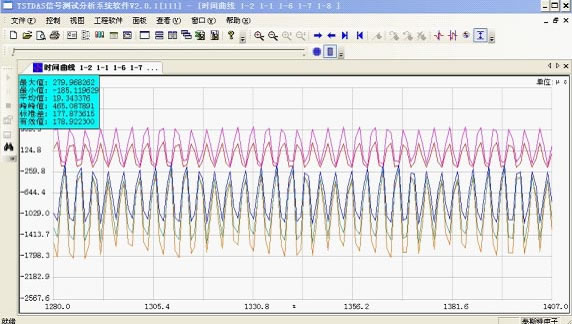 4.打开EFBE测试机,车架就随着气缸的左右施力而摆动,此时软件可直接观察测点的应变情况,曲线如下图三所示。