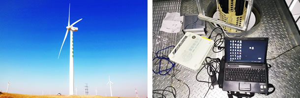 测试风力发电机在风载荷作用下,筒壁产生振动信号