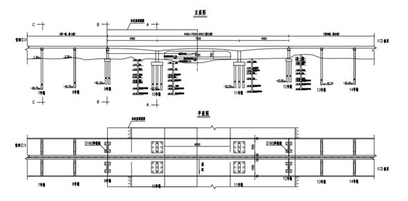 丹金溧漕河大桥位于江苏常合高速公路(金坛——溧阳段),跨越丹金溧漕河;预应力混凝土组合箱梁桥梁下部结构根据桥位处的地质情况,采用柱式桥墩,钻孔灌注桩基础;设计荷载:汽车—超20级,挂车—120;桥墩编号起始编号为0#;桥梁的构件及支座编号为从内侧向外侧依次编号,起始编号为1#;桥梁中提到的纵向、横向裂缝是相对于路线方向而定的,与路线方向一致为纵向,与路线正交方向为横向。