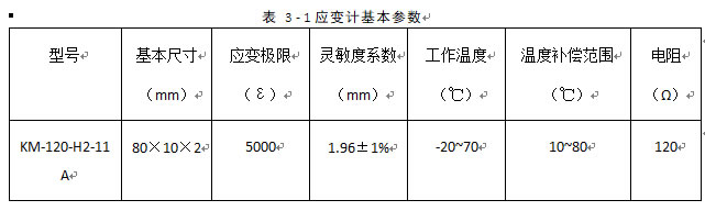 应变数据获取采用日本共和电业公司的KM-120-H2-11型混凝土表面应变计,基本参数见表 3 - 1。