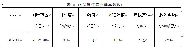 温度监测采用PT100温度传感器,基本参数见表 3 - 15。