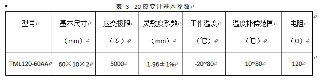 应变数据获取采用日本东京测器研究所(TML)的TML120-60AA型应变计,基本参数见表 3 - 20。