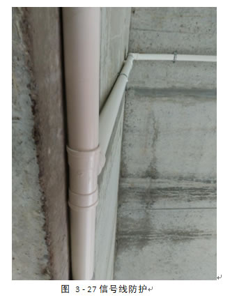 桥上的信号线防护全部采用了20PVC线管进行防护,并采用卡扣进行固定。完成图如图 3 - 26:
